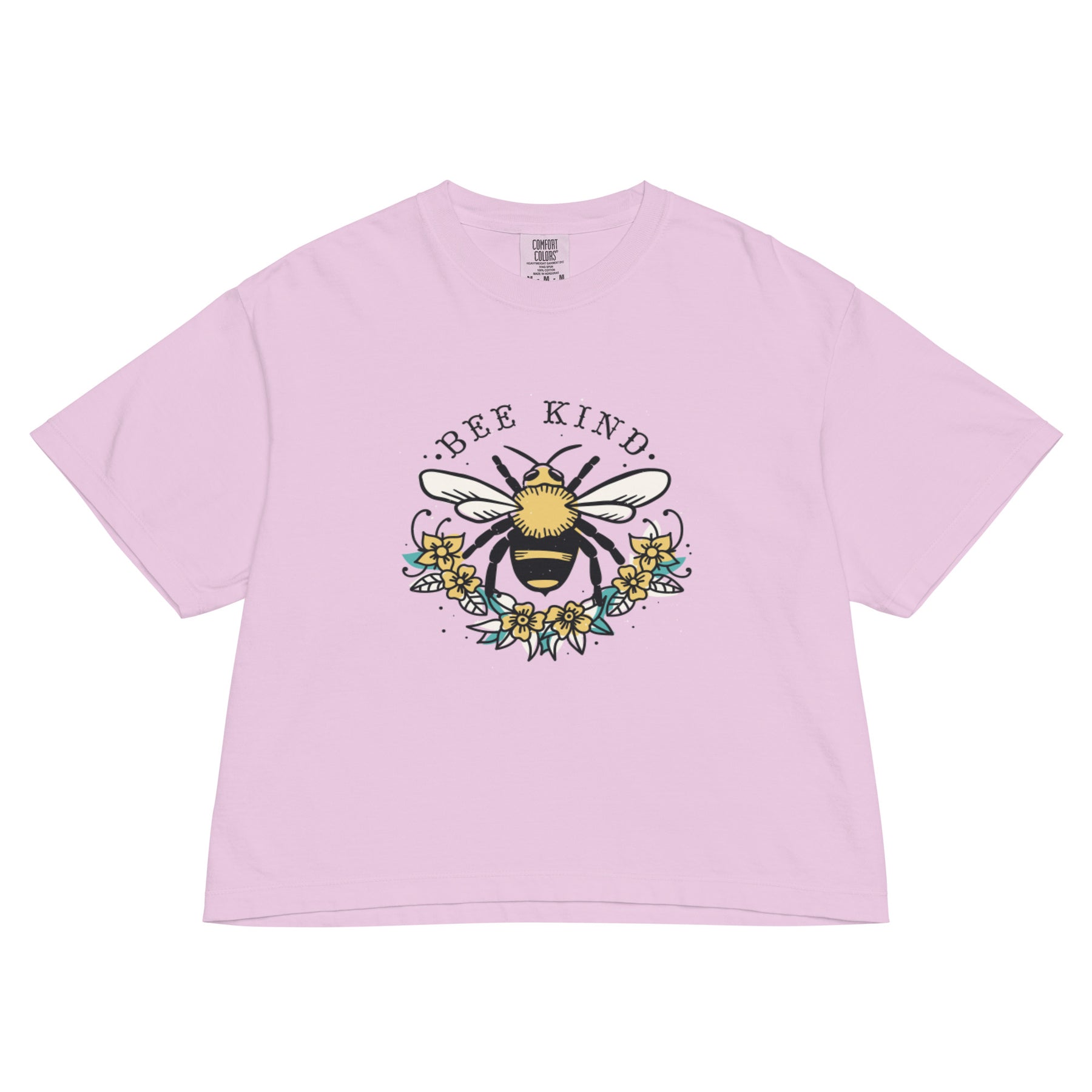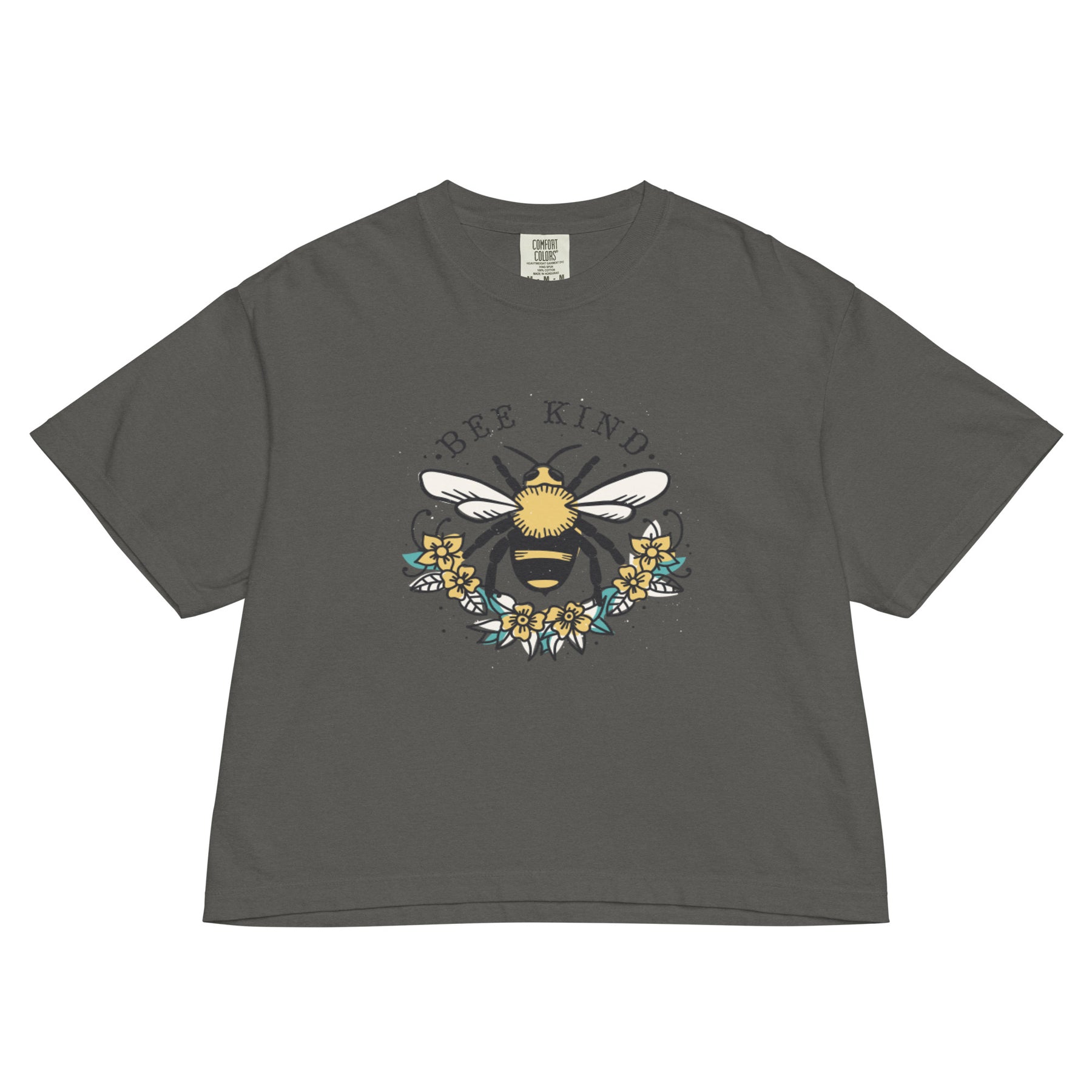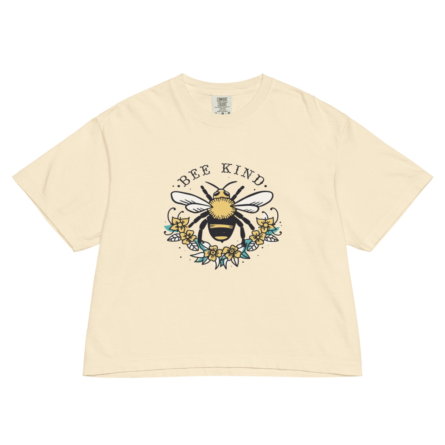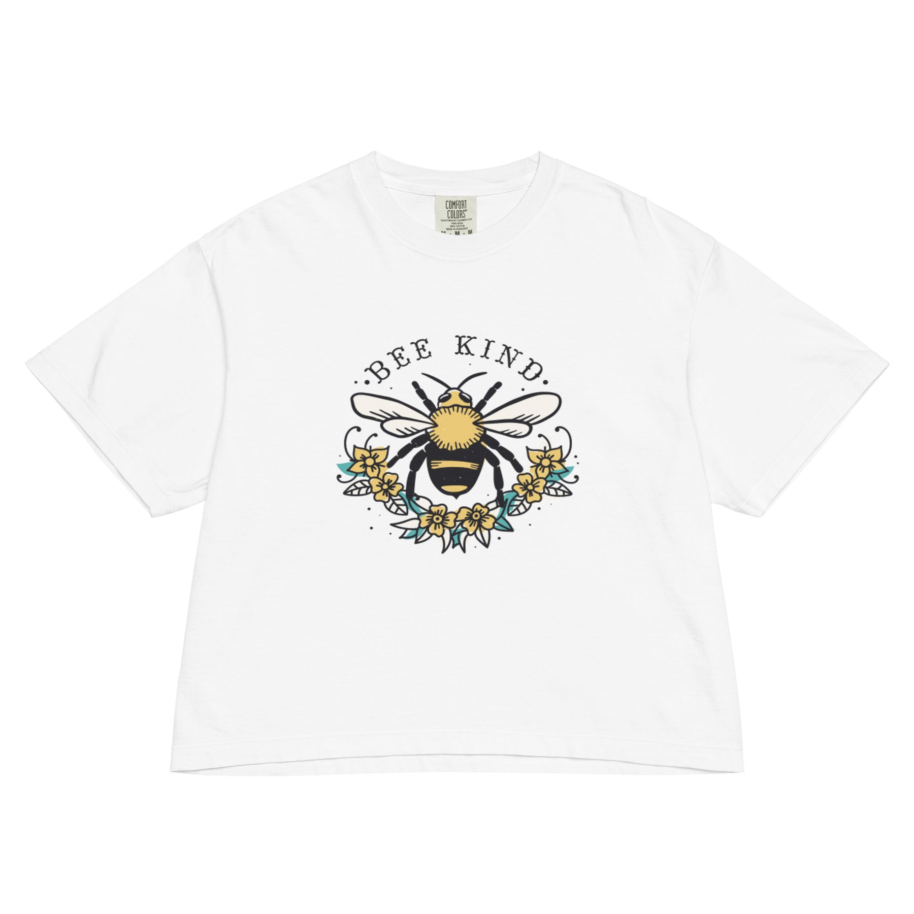 Bee Kind Women’s Boxy Tee – Heavyweight Relaxed Fit T-Shirt with Cute Bee Graphic | Positive Kindness Shirt